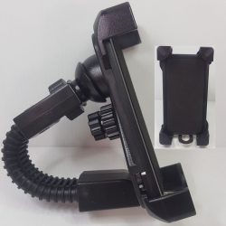 Motorbike Universal Holder with a firm adjustable grip on handle bar offering a secure mount to withstand vibrations and bumps while making the cradle easy accessible and safe. . The holder / cradle is adjustable with a swivel lock and suitable for phones 12mm thick and less.